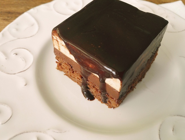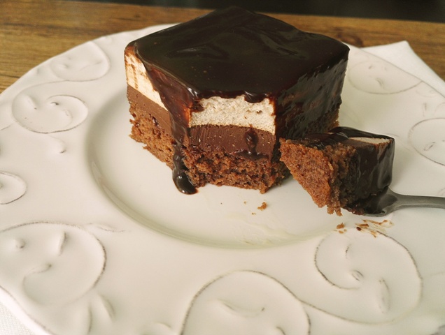 A iesit exact cum ma asteptam. Mousse-ul fin si aromat de banana combinat cu ganajul de ciocolata si blatul pufos insiropat…un deliciu.