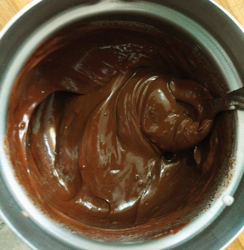 Eu incep intotdeauna cu blatul pentru prepararea caruia am nevoie de 6 oua, 6 linguri de zahar, 6 linguri de faina, esenta de vanilie, praf de copt, 100 gr ciocolata amaruie, 100 ml smantana lichida. Separ albusurile de galbenusuri. Pe acestea din urma le mixez cu jumatate din cantitatea de zahar si adaug esenta de vanilie. Separat bat albusurile spuma cu un praf de sare si un strop de lamaie apoi adaug treptat restul de zahar. La baia de aburi topesc ciocolata ( am adus smantana la punctul de fierbere dupa care o iau dupa foc si adaug ciocolata rupta in bucatele mici, amestec pana cand se topeste si o las sa se raceasca putin) apoi o torn peste galbenusuri si amestec.